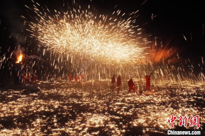 據悉,“花”與“發”諧音,取“打花打花,越打越發”之意。“打鐵花”不僅蘊含著人們祈福納祥的美好愿望,也展現了民間生鐵冶煉傳統技藝的工匠精神。侯奇志 攝