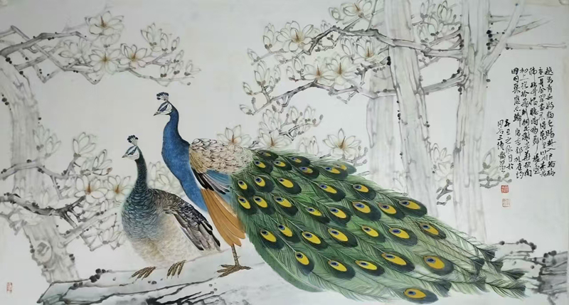 2009年,一幅工筆《粉蝶戲牡丹》的成功售出,成為王自強藝術生涯的轉折點。這幅細膩靈動的作品不僅帶來經濟收益,更讓他意識到傳統工筆畫的市場潛力。此后十年間,他創作的《孔雀牡丹》等工筆畫作屢獲佳績,八尺整張作品曾拍出2萬余元高價。但真正讓他在書法界嶄露頭角的,是對漢隸的深入探索。