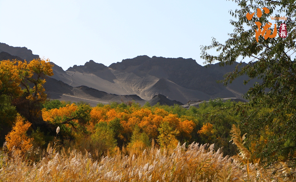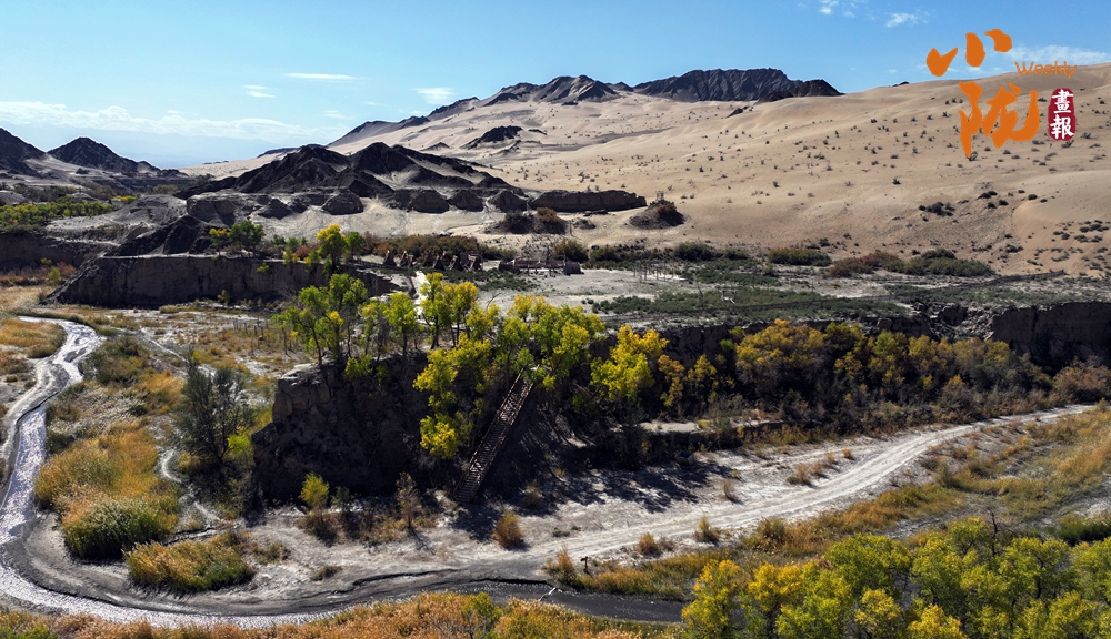 這里山勢奇特,因溝深線長,猶如峽谷,溝邊自生許多胡楊,被稱為“胡楊峽”。你看,溝邊沙山林立,千年胡楊挺拔,溝內(nèi)溪水清澈纏綿,天然的紅柳、蘆葦、梭梭、沙棗樹等植被錯(cuò)落有致,共同繪就了一幅秋日畫卷。