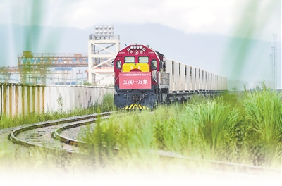 8月23日,前往老撾萬象的國際貨物列車駛出中老鐵路中國玉溪研和站。當日,中老鐵路國際貨物列車(玉溪—萬象)實現(xiàn)雙向開行。新華社記者 陳欣波 攝