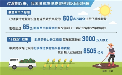 我國牢牢守住了不發生規模性返貧致貧底線。韓俊介紹,我國堅持精準幫扶,全面建立健全防止返貧致貧監測幫扶機制,不斷豐富幫扶政策“工具箱”。截至今年7月底,已經累計對監測識別有返貧致貧風險的600多萬群眾進行了精準幫扶,消除了返貧致貧的風險。