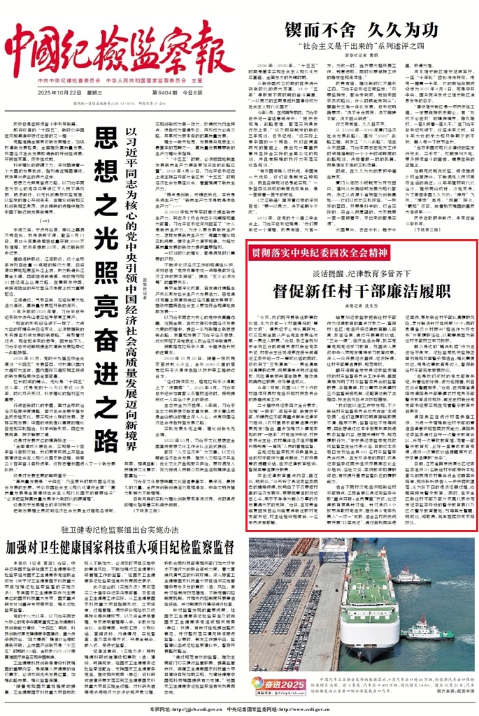 群眾身邊的“蠅貪蟻腐”行為往往始于微末。紀檢監察機關堅持正面引導和反面警示相結合,強化震懾效應,用身邊事教育身邊人,督促新任村干部筑牢思想防線。