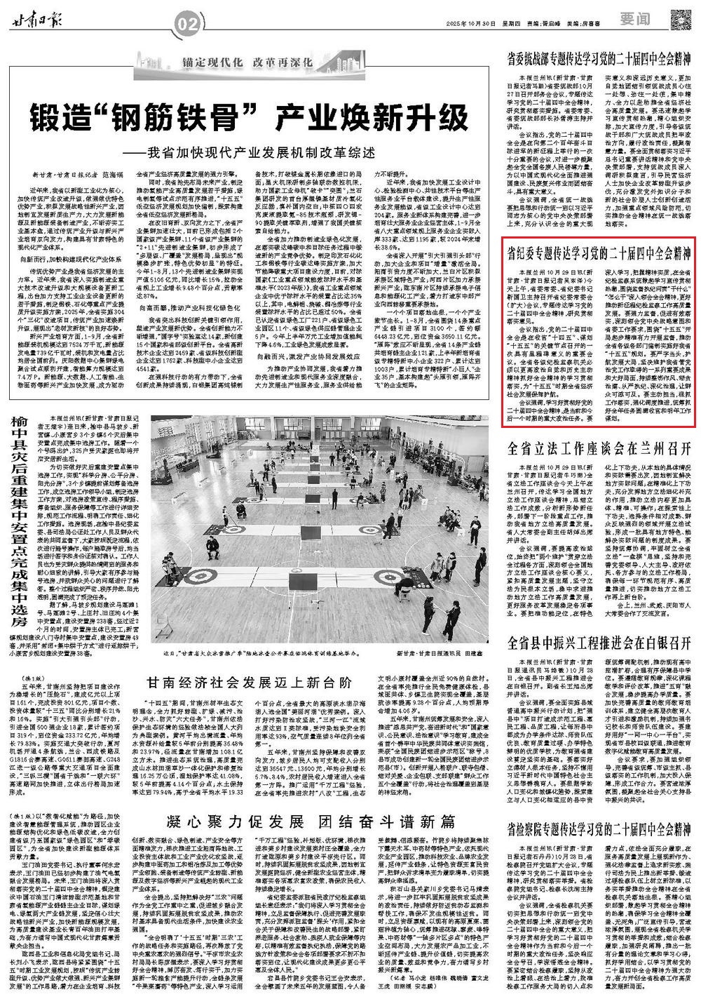 《甘肅日?qǐng)?bào)》2025年10月30日 第2版