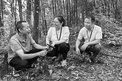 福建省龍巖市紀委監委將深化集體林權制度改革作為政治監督重要內容,不斷夯實高質量發展底色。圖為該市武平縣紀檢監察干部在萬安鎮捷文村林下靈芝種植基地了解有關情況。曹建橋 攝