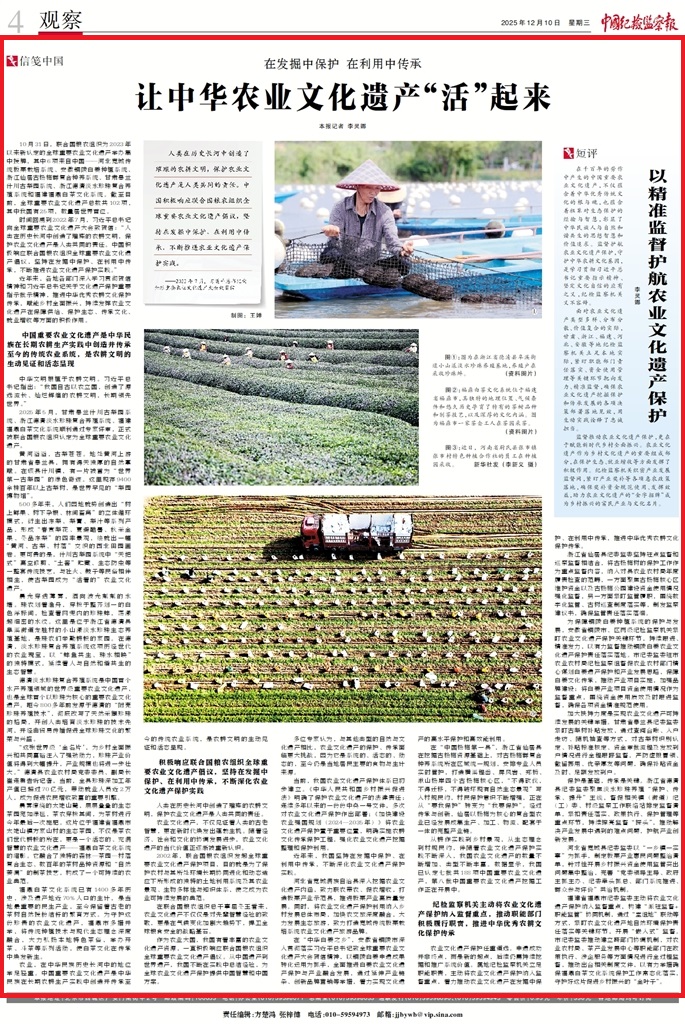 農業文化遺產保護任重道遠。申遺成功并非終點,而是新的起點,后續仍需持續挖掘和推廣系統價值。屬地紀檢監察機關立足職能職責,主動將農業文化遺產保護納入監督重點,著力推動農業文化遺產在發掘中保護、在利用中傳承,推進中華優秀農耕文化保護傳承。