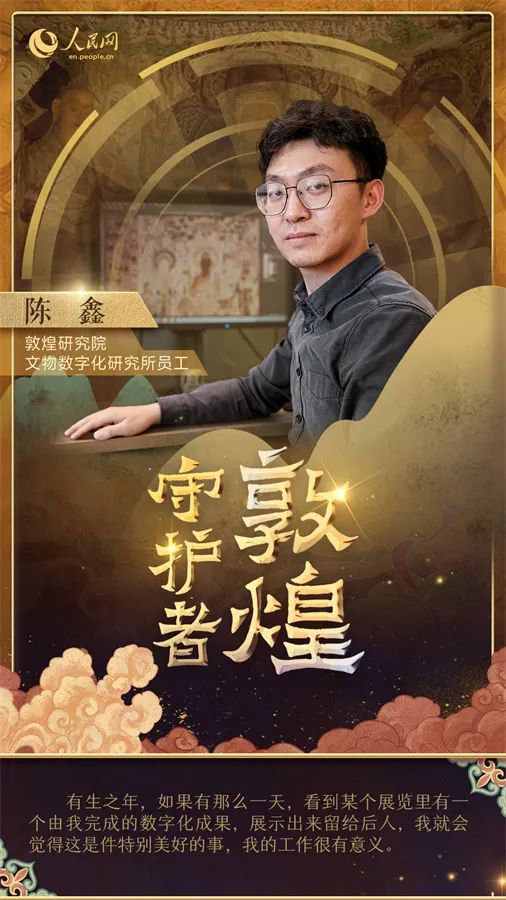 在敦煌研究院文物數字化研究所,工作人員們正開展數字化項目,將莫高窟的壁畫和雕塑變成數字化產品。陳鑫就是其中一員,在文物數字化研究所工作的四年,他負責壁畫的數字化處理。“我們的目標是利用現代技術保護這些文物,讓它們活起來并傳承下去,讓我們的后代能夠看到它們。”