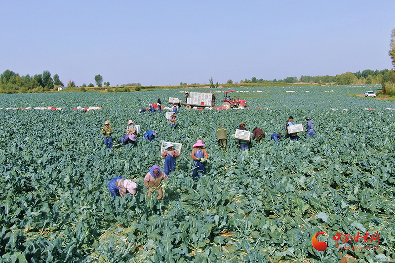 金秋九月,臨澤縣蓼泉鎮墩子村的萬畝西藍花基地迎來第二茬豐收。田間地頭,一顆顆飽滿翠綠的西藍花在陽光下熠熠生輝,農戶們穿梭其間,熟練地進行采摘、裝筐,一派繁忙喜悅的豐收景象。“我們在這里種植西藍花已經五年了,今年二茬采收從8月28日開始,畝產約3500斤。頭茬在6月上旬收獲,每畝收入超過6000元。”蓼泉鎮萬畝西藍花基地負責人嚴德華介紹。