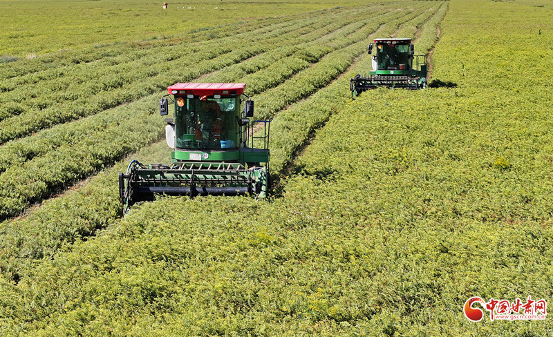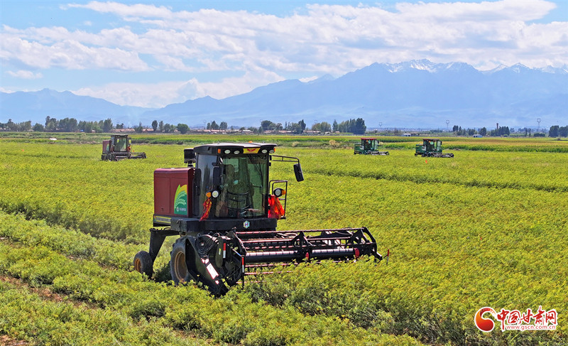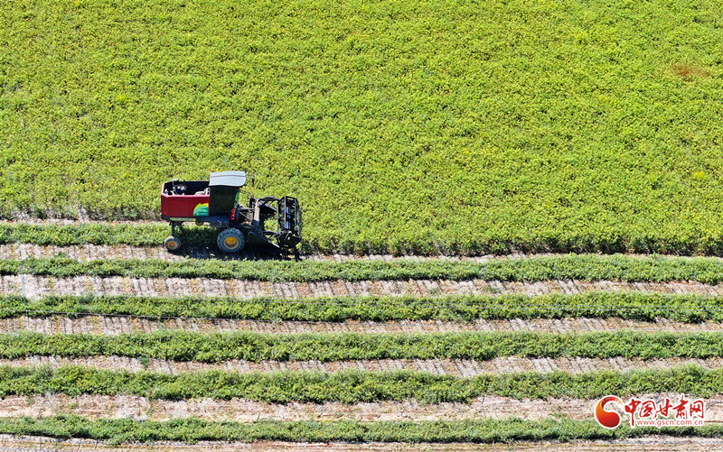 時下,在民樂縣民聯鎮太和村千畝茴香種植基地,種植戶利用晴好天氣,駕駛機械在田間采收茴香。
