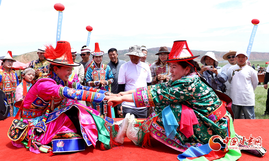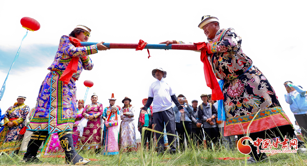 7月26日,肅南裕固族自治縣大河鄉“清涼大暑傳牧韻 聚力奮進繪新篇”農牧民文藝展演暨傳統體育運動會在神鹿公園拉開帷幕。當地農牧民群眾進行了頂杠子、拉爬牛、拔棍等民族傳統體育比賽,展示了織褐子、捻毛線、裕固族婚等非遺項目,為3000多名游客呈現了一場豐盛的民族文化盛宴。