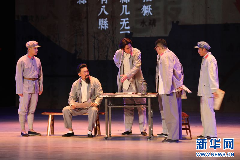 圖為演員在慶陽大劇院表演大型民族歌舞劇《蘇維埃政府成立》片段。新華網(wǎng)(王生元 攝)