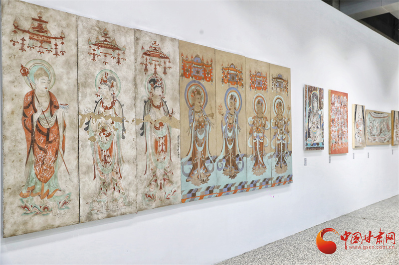 第八屆敦煌文博會“絲路華彩·盛世華章——敦煌及絲路沿線地區(qū)石窟寺壁畫藝術(shù)傳播與展示”專展,西北師范大學(xué)敦煌學(xué)院馬寶團(tuán)隊(duì)帶來了絲路沿線34個石窟寺壁畫臨摹作品,以及流失海外的壁畫精品臨摹作品,系統(tǒng)梳理了以河西走廊石窟群為代表的絲綢之路沿線石窟壁畫藝術(shù),讓全世界的觀眾可以更直接參觀熠熠生輝的絲綢之路經(jīng)典壁畫。