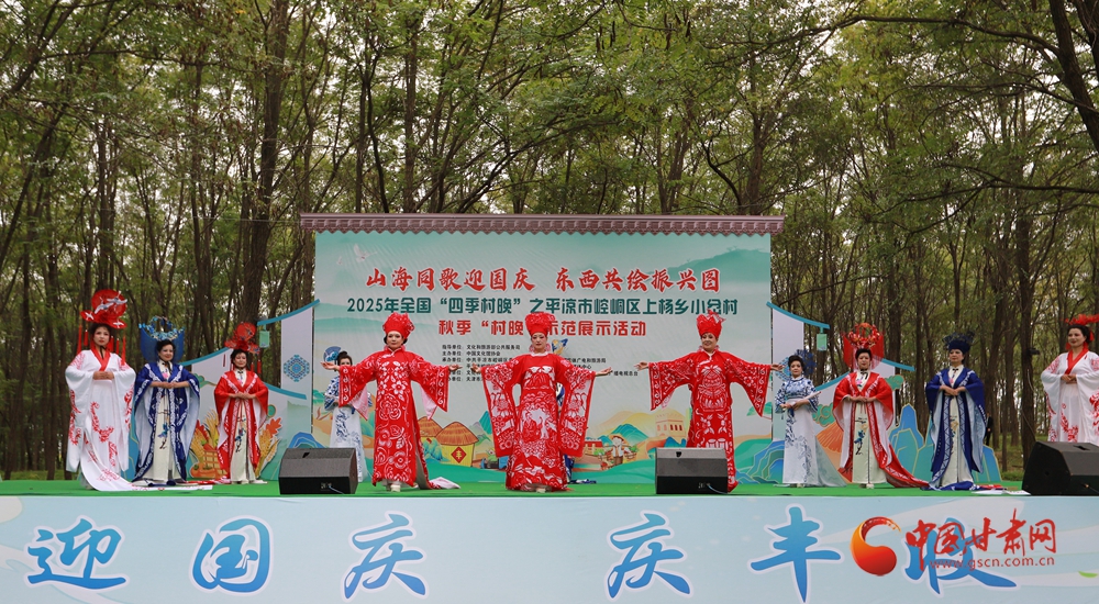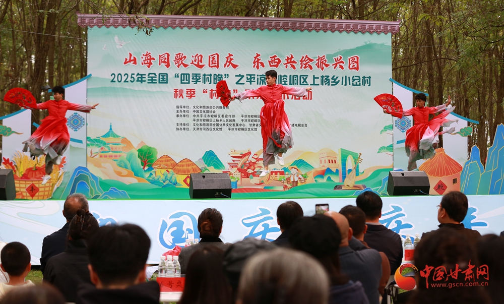 9月20日,以“山海同歌迎國慶 東西共繪振興圖”為主題的2025年全國“四季村晚”之平?jīng)鍪嗅轻紖^(qū)秋季“村晚”示范展示活動舉辦。崆峒區(qū)和天津市河西區(qū)兩地文化志愿者通過同臺文藝展演、非遺體驗、民俗特色走秀等藝術(shù)形式,為現(xiàn)場700余名觀眾及直播平臺數(shù)萬網(wǎng)友呈現(xiàn)了一場隴東風情的鄉(xiāng)村文化盛宴,彰顯了“隴原津韻”協(xié)作幫扶情誼。