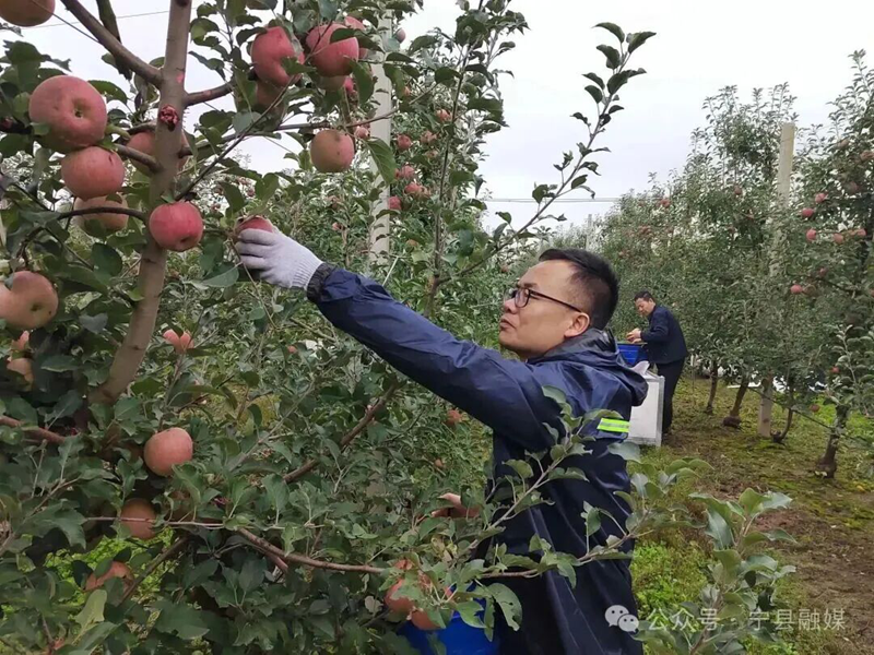 寧縣組織動員全縣各機關、企事業單位干部職工,第一時間下沉至農業生產一線,重點支援蘋果種植集中的村鎮,爭分奪秒協助果農搶收蘋果。