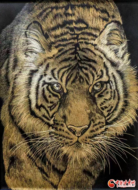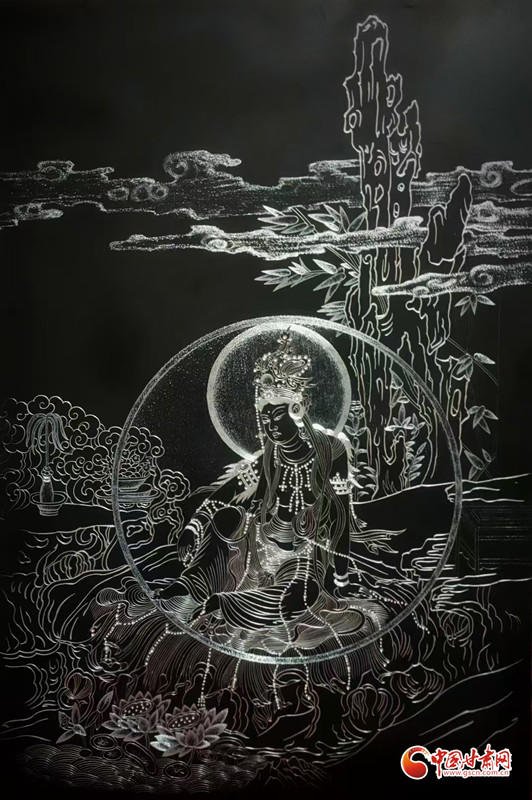 對張兆武來說,做鍥金畫從來不是“照貓畫虎”。他琢磨傳統書畫的筆墨、篆刻的力道,慢慢攢出了自己的一套刀法;創作時,心里裝的也全是敦煌——從莫高窟第112窟里“反彈琵琶”的靈動舞姿,到傳說中“九色神鹿”的溫潤模樣,都成了他刻刀下的主角。他刻出的飛天,飄帶像帶著風;刻出的菩薩,眉眼間透著莊重;金屬的光澤在畫面上流轉,明明是靜態的畫,卻像在講一段活的敦煌故事。“不用多說什么,看過的人能懂這份美。”張兆武說的這份“懂”,恰恰打破了文化和語言的距離,讓東方的古老美學,和全世界的現代審美碰出了共鳴。