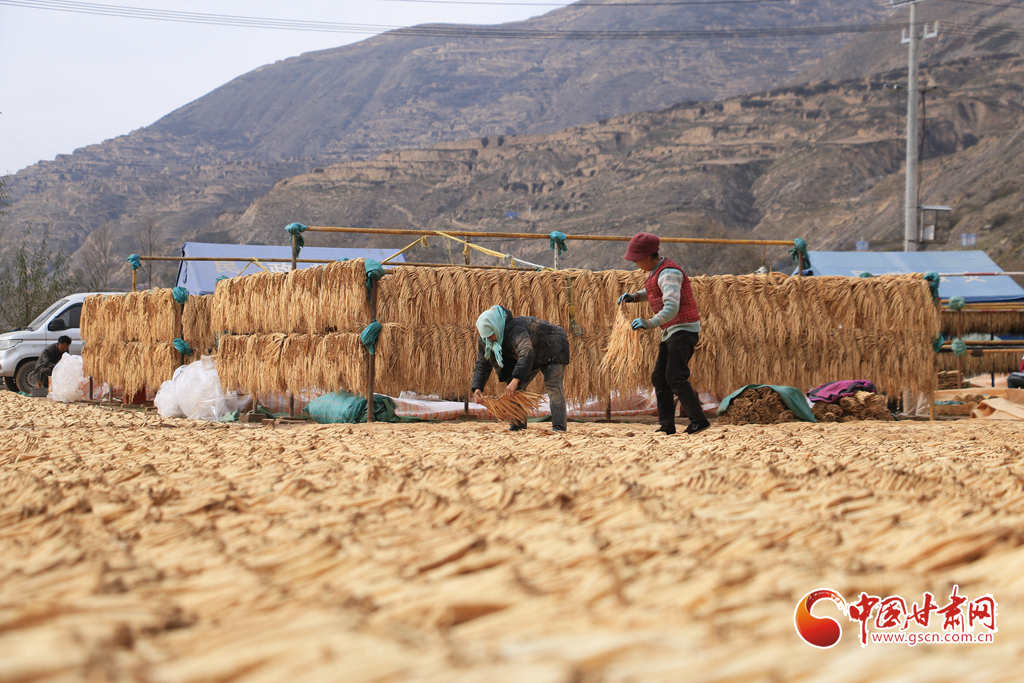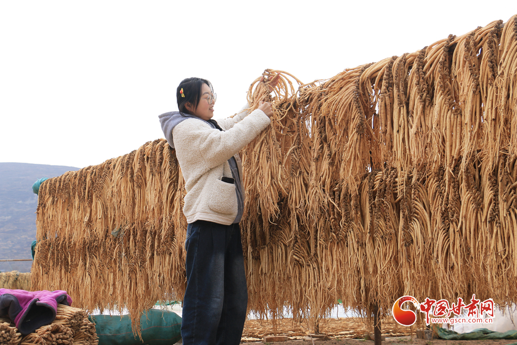 11月19日,岷縣維新鎮的農戶們正忙著晾曬中藥材黨參。今年,該鎮種植的當歸、黨參、黃芪等中藥材喜獲豐收,眼下已進入黨參晾曬加工的高峰期。藥農們搶抓晴好天氣,忙著沖洗、分揀和晾曬,洮河兩岸、合作社及農家院落間,處處呈現一派繁忙景象。
