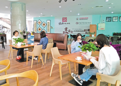 廣州中醫藥大學里的悅讀中醫書吧為同學們提供了舒適的閱讀氛圍。