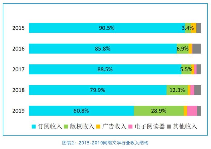 相較于往年,網絡文學行業的收入結構則出現變化。