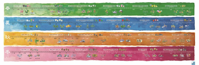 每一個節氣再劃分為三候……這三候分別以幾個字的形容,分成初中末三段對應置入年歷中,文字中可感受到早年中國黃河流域的景物。