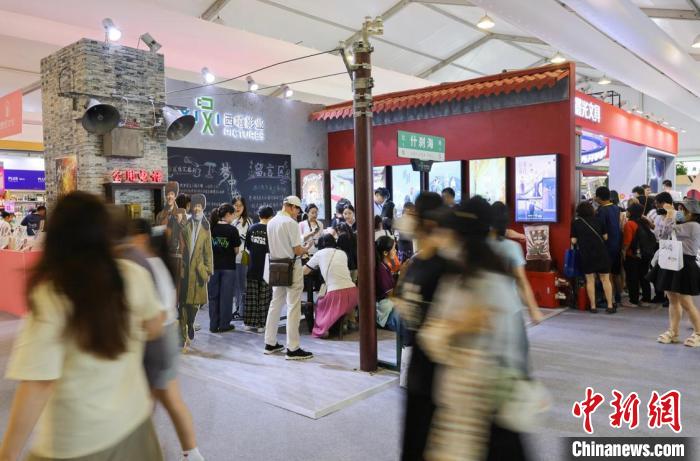 作為一眾圖書展示中頗不一樣的存在,“夢中的那片海·燃夢書展”活動以熱播劇《夢中的那片海》為主題,融入上世紀七八十年代老北京元素,以沉浸式的展臺布景,帶來一場別致的視覺體驗,參展觀眾可通過創意打卡、對臺詞暗號等多種形式參與活動,在展臺獲取周邊禮品。種種新玩法吸引了眾多觀眾駐足。