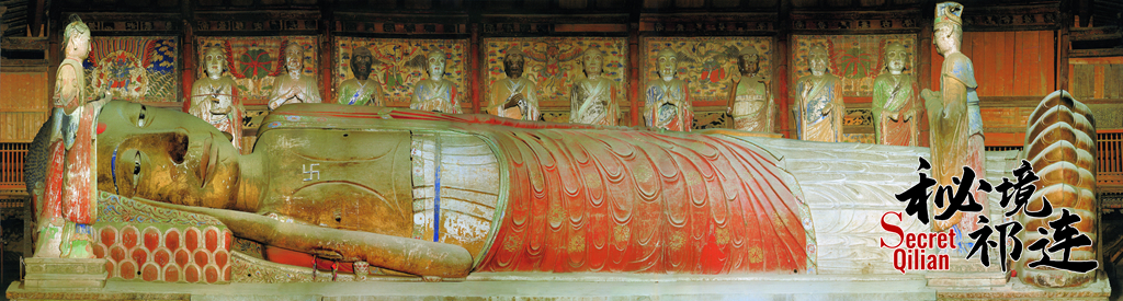 最后讓我們去發現,金張掖的神秘色彩,走進始建于1098年的大佛寺。大佛殿內塑有釋迦牟尼涅槃臥像,佛身長34.5米,游客可以虔誠地在他身旁挪動腳步,體會宏大與渺小的強烈對比。