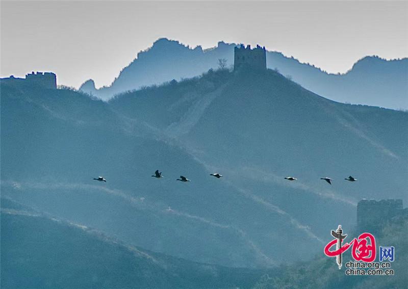 從南方遷徙飛翔越過金山嶺長城后繼續北飛,
