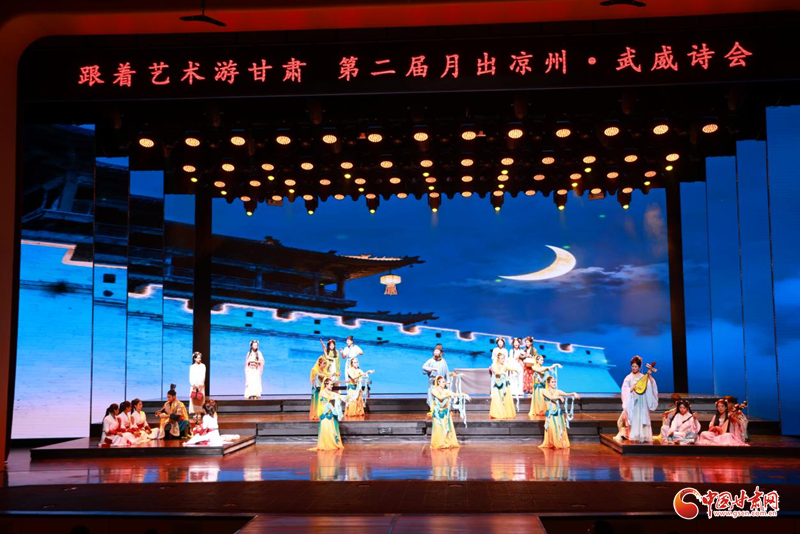 中國甘肅網9月27日訊(西北角·中國甘肅網記者 張振國 文/圖)醉聽古來橫吹曲,雄心一片在西涼。9月25日晚,由甘肅省文旅廳主辦,中共武威市委宣傳部、武威市文體廣電和旅游局承辦的“跟著藝術游甘肅——第二屆月出涼州·武威詩會”在西涼大劇院舉行,再現昨日繁華與今朝盛世,開啟了穿越古今的文化之旅。