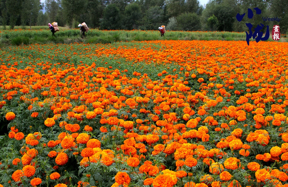 金黃的萬壽菊低垂著頭,仿佛是在向大地母親致謝,感謝她給予的滋養與庇護。農人們穿梭其間,臉上洋溢著滿足與幸福的笑容,他們的汗水在這一刻得到了豐厚的回報。