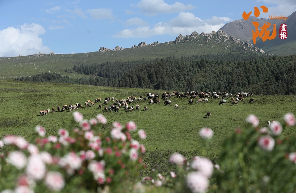 祁連下的康樂草原,是肅南裕固族人生活的地方。這里風光秀美,山地高原交相呼應,丘陵漫甸連綿起伏。放眼周圍,遠處祁連山巍峨挺拔,近處樹木郁郁蔥蔥,優美壯觀。