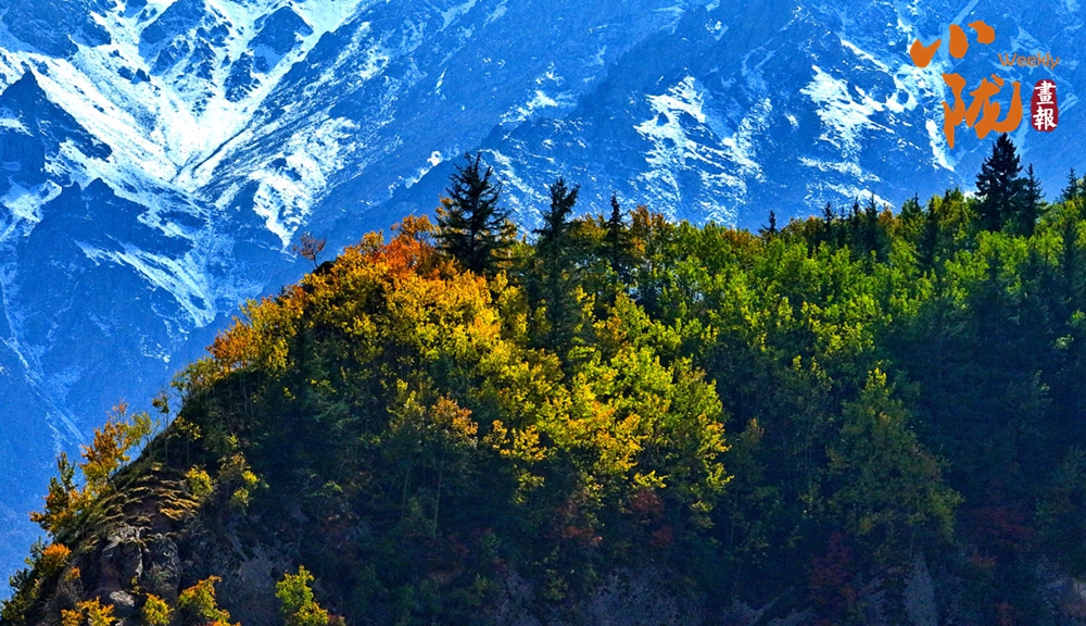 秋風吹過,祁連山的原始森林悄然換裝。黃綠交織,紅金點染,仿佛大自然執筆揮灑的油畫,靜謐而熱烈。尤其是在陽光的照耀下,與遠處的雪山和湛藍的天空、潔白的云朵,形成鮮明的對比。
