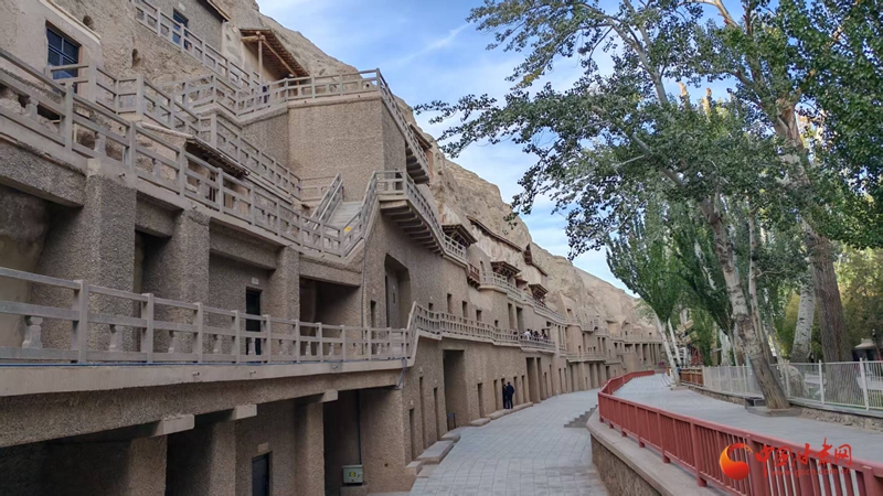 走出莫高窟,暖陽下的九層樓像戈壁灘上的一幅“中國畫”。壁畫不會說話,卻用顏色與線條告訴世界:何以中國?在敦煌,在墻上,在人們仰頭凝視壁畫的那一刻,中國已然數千年,且從未褪色。