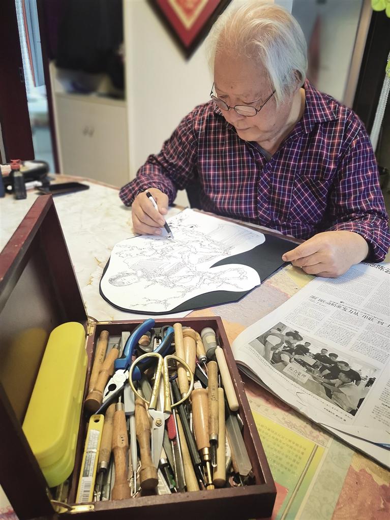 談到創(chuàng)作過程,他眼神中閃爍著匠人的嚴(yán)謹(jǐn)光芒:“剪一個(gè)好作品,首先要有一個(gè)構(gòu)思,然后再把它畫出來,再去動(dòng)剪刀、刻刀各種工具。” 在他這里,剪紙絕非簡(jiǎn)單的“剪花樣”,而是嚴(yán)謹(jǐn)?shù)乃囆g(shù)創(chuàng)作,是“胸有成竹”后的“運(yùn)剪如風(fēng)”。