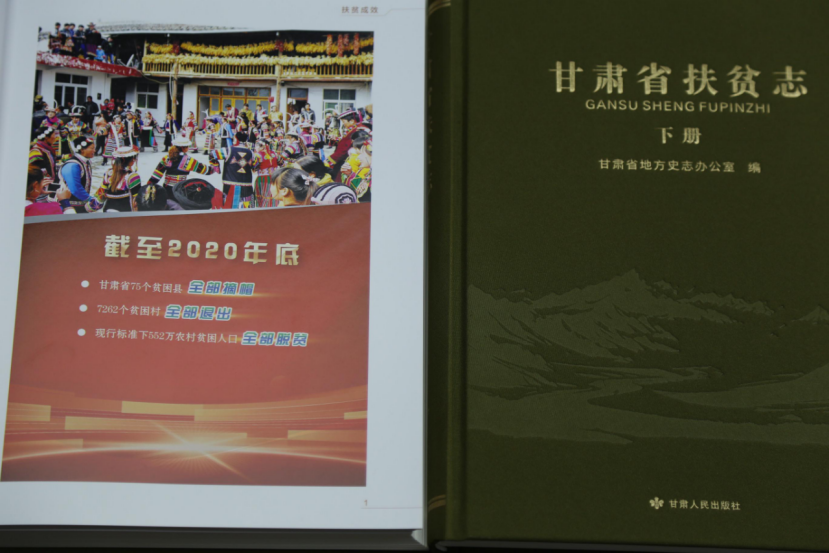 《甘肅省扶貧志》《甘肅省全面小康志》是由甘肅省地方史志辦公室組織編纂的全方位記錄和展示甘肅省扶貧開發和全面建成小康社會歷史進程及重大歷史成就的專題性志書。《甘肅省扶貧志》全面客觀、翔實準確地記述了中華人民共和國成立至2021年共72年間,在中國共產黨的堅強領導下,甘肅省委省政府團結帶領全省各族人民消除貧困的歷史進程、扶貧開發的重大舉措、人民群眾的艱苦奮斗、取得的扶貧成就以及探索的扶貧經驗,尤其突出記述了黨的十八大以來全省脫貧攻堅的歷史進程和卓越成就。全志共8編35章105節,約140萬字近600幅圖照。《甘肅省全面小康志》全面客觀、翔實準確地記述了改革開放以來至2021年共43年間,全省人民在中國共產黨領導下全面建成小康社會的篳路藍縷的歷史進程,重點突出了黨的十八大以來,以習近平同志為核心的黨中央堅強領導下,全省決戰決勝全面建成小康社會的偉大歷程和巨大成就。全志共5編25章95節,約125萬字600多幅圖照。兩志直觀呈現了“全國脫貧看甘肅”的特殊貢獻,為后人留存了“何以脫貧”“何以小康”的歷史答案。