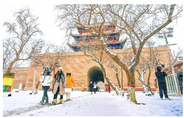中國甘肅網12月22日訊 據嘉峪關日報報道(融媒體中心記者 李巍 攝)12月19日,漫天飛雪靜落雄關,把巍峨邊關裝扮出水墨意韻,在壯美之余,更是增添了溫婉靜謐之美,吸引游客探訪體驗。