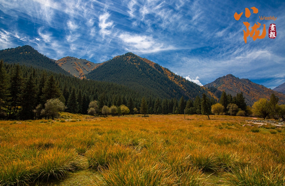 漫山遍野的草木披上金黃,與湛藍的天空、澄澈的溪流相映成趣,形成獨特而靈秀的高原風光。